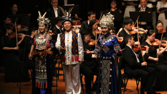 艺术家们用音乐讲述了红军长征中一个又一个的感人故事,让在座的观众朋友们重温了红军长征初期在湖南通道转兵西进贵州,从而挽救红军命运、奠定遵义会议基础的这一重大历史事件。